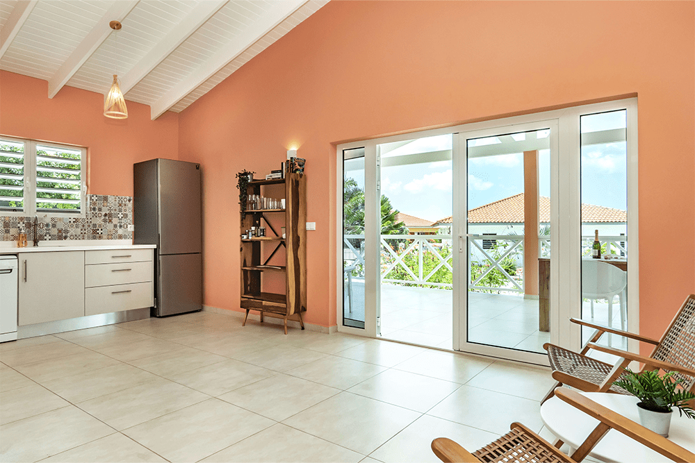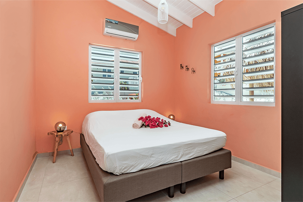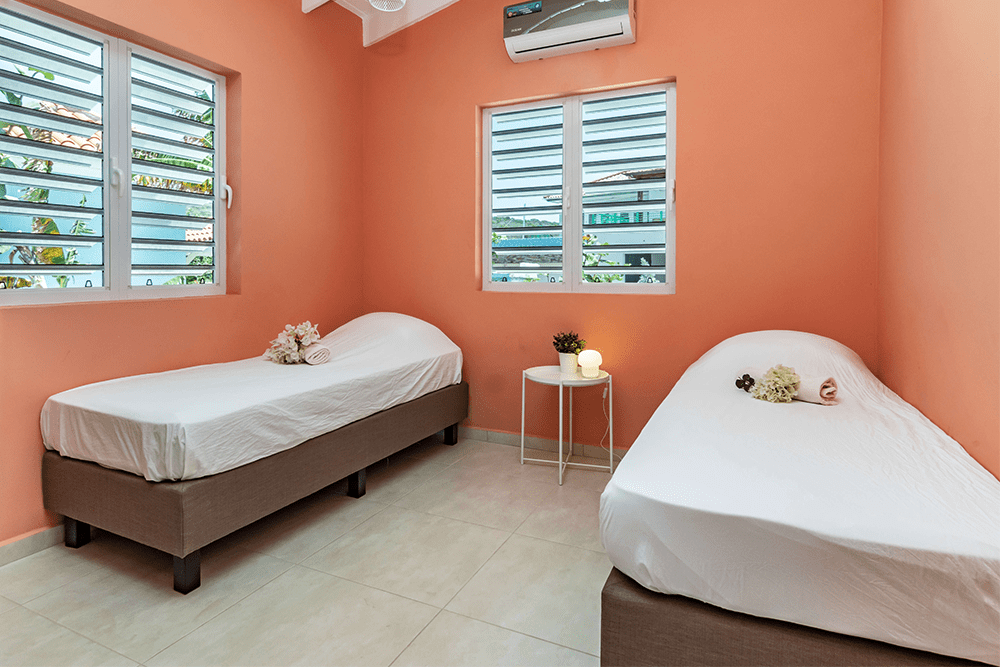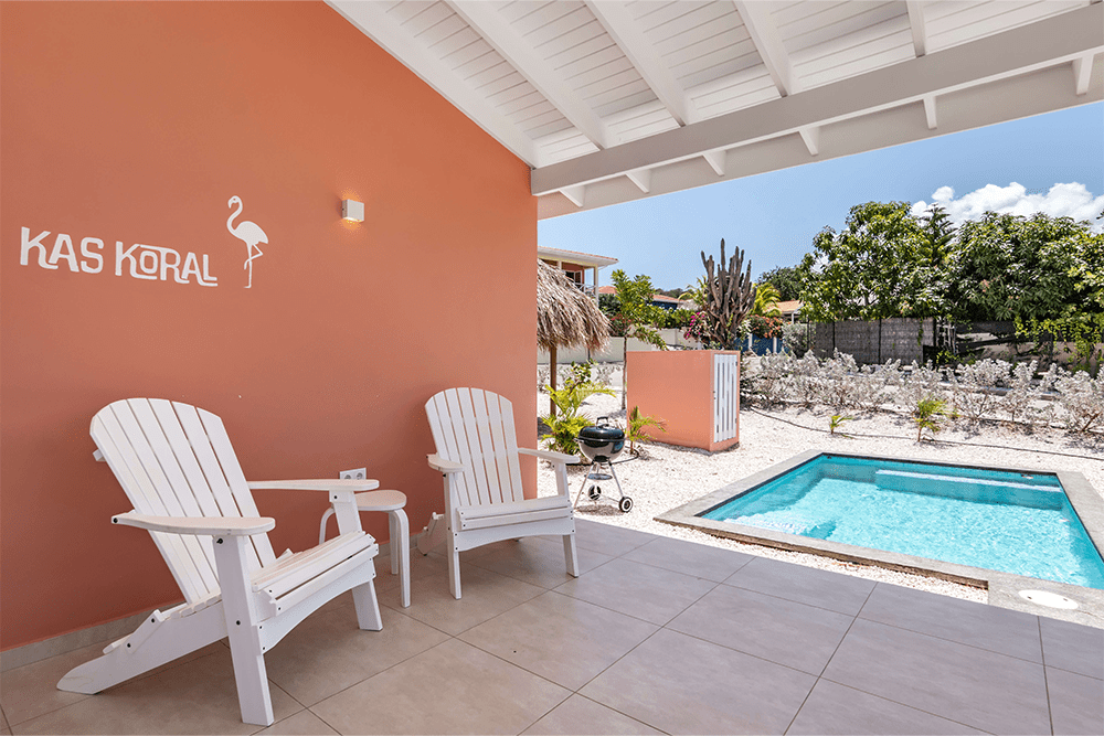 Geniet van het leven midden in de natuur van Bandabou Curaçao. Dankzij het glooiend terrein, de omringende natuur en de begroeide heuvels ontstaat er een gevoel van vrijheid. Op slechts 15 minuten rijden van vliegveld Hato ligt Villapark Fontein. ‘Kas Koral’ is een modern vakantiehuis van 90m2 met zwembad en een ruime veranda. De woning heeft 2 slaapkamers en 1 badkamer en is geschikt voor 4 personen. De woonkamer met open keuken staat direct in verbinding met de veranda, waardoor er een grote leefruimte ontstaat en de wind heerlijke verkoeling biedt. De woning is voorzien van europese (220V) stopcontacten en WiFi. In het hele huis zijn shutterramen met horren, waardoor de wind heerlijk door het huis waait. De veranda is voorzien van 2 beachchairs en een eethoek met 4 stoelen. In de woonkamer treft u 2 zitstoelen aan aan, samen met een boekenkast met e.e.a. leesvoer ;-). De open keuken is voorzien van alle gemakken voorzien inclusief een vaatwasser! Ook aan een Senseo apparaat en een waterkoker is gedacht. De slaapkamers zijn voorzien van een stille, zuinige airco. In de masterbedroom staat een 2 persoons boxspring bed en een kledingkast om uw kleding overzichtelijk op te kunnen bergen. De tweede slaapkamer heeft 2 boxspringbedden (die eventueel tegen elkaar geplaatst kunnen worden).